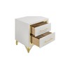 Gleaming gold trim captures attention on a modern two-drawer nightstand. Perfect for your sophisticated bedside, it boasts a bright white finish case that offers the perfect touch of depth with its gold trim. A pair of long bar pulls decorate drawer fronts. Hairpin style legs offer vintage flair and exceptional elegance. Two drawers add plentiful bedside storage, offering a place to ruck away personal items and overnight essentials.