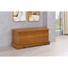 A wood storage chest brings character and practicality to any room of the house. This solid wood chest is constructed to be durable and crafted to be simple and genteel. Sufficiently spacious for all your seasonal bed linens or family heirlooms. Locking lid keeps out prying eyes and fingers when hiding gifts and other secret surprises. Honey brown finish is gorgeous in a bright sunny bedroom.