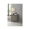 Augment your styling and approachable bedside with a transitional two-drawer nightstand. Delivering a touch of farmhouse charm and casual ambiance, it provides plenty of storage at your bedside. Its wide top is ideal for a reading light or a vase, offering a perfect space for personal touches. A brown oak wood grain finish graces laminate surfaces that are specifically engineered to resist scratches and dents. Bar handles decorate drawer fronts while mitered trim and tapered block legs add the perfect touch of precision and dimensionality.