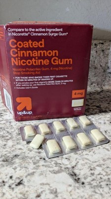 [This review was collected as part of a promotion.] I got these up&up nicotine gum for my husband. Since starting them, he has cut back on smoking at around 75%. Which is awesome. He loves the cinnamon sugar flavor. It's not overwhelming in taste or texture. He likes the gum better than the lozenges. Definitely recommend!!