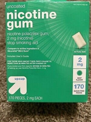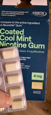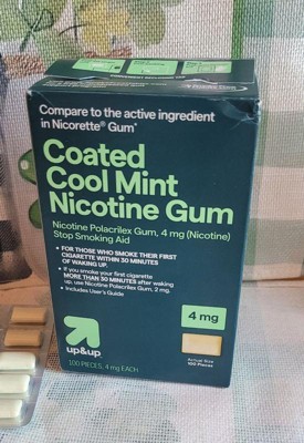 Compare to Nicorette Gum active ingredient. Double your chance to successfully quit smoking with up&up Nicotine Polacrilex Coated Gum, 4 mg (when used as directed with a support program. Many people require several quit attempts to stop smoking). up&up Nicotine Polacrilex Coated Gum, 4 mg (nicotine), Mint Flavor is a stop smoking aid for those who smoke their first cigarette within 30 minutes of waking up. Nicotine gum is part of a Nicotine Replacement Therapy (NRT), designed to wean your body off cigarettes. It helps regulate, control and gradually reduce your body’s nicotine cravings. American Cancer Society (ACS) supports nicotine replacement therapy to help people on their journey towards a smoke-free lifestyle.