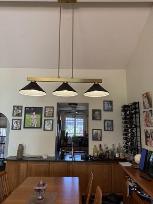 Conical metal shades bring classic ambiance to a modern three-light billiards light. Its clean-lined frame is perfect over a pool table or gaming space, featuring a modern gold finish that pairs perfectly with the rich bronze of its shades. From the Cobalt collection, it offers bright illumination for all types of entertainment pursuits.
