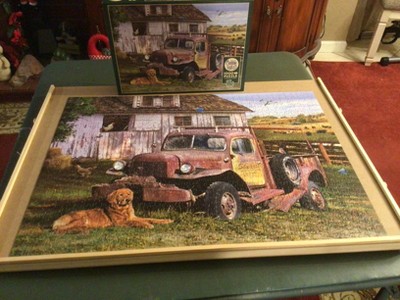 This vintage Summer Truck isn't going anywhere in its rusted condition, so the farm dog is happy to sit in front of it as he relaxes on the farm. This 1000-piece country puzzle featuring art by Greg Giordano is sure to relax you as you put it together. Assembled puzzle measures approximately 26.625 x 19.25 inches.