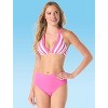 A bra sized bikini top with underwire gives the girls a lift. Adjust the back tie and halter neckline for double the comfort. Splashed with sorbet inspired stripes.