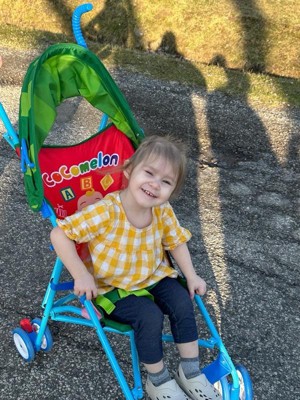 [This review was collected as part of a promotion.] Very colorful stroller and easy to use. It’s lightweight and can be taken anywhere. It’s quick to set up and fold. I would recommend this to any kid that loves cocomelon.
