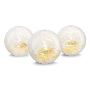 Water sports are about to get a lot more glamorous! Our Jumbo Glitter Beach Balls are sure to turn heads and be a blast at any beach party or pool day! With a deflated diameter of 27", and made of heavy duty, durable materials, these beach balls are built to last and resist punctures. Includes three (3) Jumbo 27" Glitter Beach Balls. Ages 5+