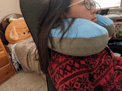 Very soft and comfortable travel pillow. I am going on a long haul overseas flight soon and ordered at least a dozen different travel pillows to try. A close runner up was the Cabeau Evolution Classic memory foam pillow but it is a bulky pillow. I'm happy I ordered this one as it deflates and can be put into a small pouch, is very comfortable on your neck and ears (some.pillos actually push on your ears), and is easy to adjust the inflation to get it just right.