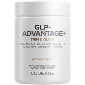 Codeage GLP-Advantage+ supplement is a comprehensive blend of chromium, berberine HCl, decaffeinated green tea, gymnema sylvestre, curcumin, L-taurine, resveratrol, boron, and a probiotic blend including akkermansia muciniphila. This GLP-1 advantage formula is crafted to help complement wellness routines.