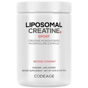 Codeage Liposomal Creatine supplement provides 5000 mg of micronized creatine monohydrate per serving. This powder supplement features a liposomal delivery and comes with a 3-month supply.