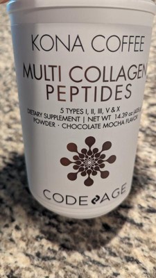 Codeage Multi Collagen Peptides Mocha features a gourmet Kona coffee blend with five types of collagen-types I, II, III, V, and X-from five distinct sources. This delicious mocha collagen coffee creamer also includes 18 amino acids.