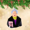 Introducing the Miranda Priestly Ornament, a chic and sophisticated piece that will add a touch of fashion flair to your holiday décor. Standing at 4.25 inches, this stylish ornament features Miranda in her iconic black jacket with a fur-look collar, a purple blouse, and a green scarf. Her jeweled earrings and black-gloved hand holding a fashion magazine bring her unmistakable presence to life. Perfect for fashion lovers, this ornament makes a unique statement and adds elegance to any tree or display. Measures Approximately 4.25 In H X 2 In W X 3.5 In D (HxWxD). Includes 1 Ornament.