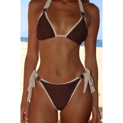 Moda Minx Contrast Cove 'Coffee & Almond' Tie Side Crystal Bikini Bottoms