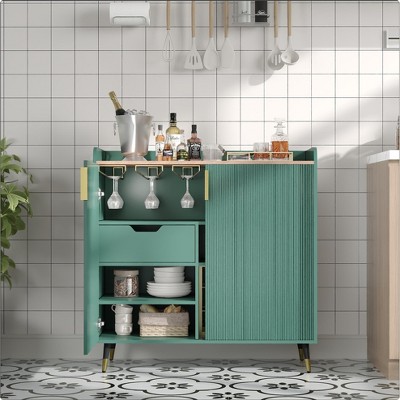 Coffee Bar Cabinet with Wine Glass Rack & Storage, 30.7" Modern Buffet Sideboard and Liquor Cabinet for Kitchen, Dining Room, Living Room