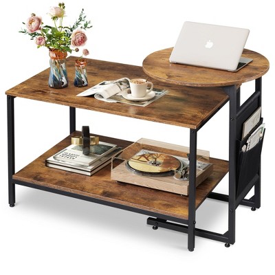 Coffee Table, 31.3" and 18.7" Small Coffee Tables , Modern Center Table and Side Table Set with Storage Side Pouch