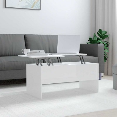 - This Modern High Gloss White Coffee Table is the perfect blend of style and function, making it a great centerpiece in any living room. Its sleek rectangular design and glossy finish not only provide a practical space for drinks and books, but also enhance the look of your room, creating a relaxed atmosphere. Lift-Top Design: The clever lift-top feature offers easy access and storage, letting you use it as a dining table or workspace.Durable Construction: Made from top-notch engineered wood, this coffee table is built to last and withstand everyday use.Stylish Finish: Its high gloss white finish shines beautifully, creating a bright and airy feel in your living space.Ample Storage: The secret compartment provides plenty of room for remotes, magazines, or other items, keeping your area organized.Modern Aesthetic: With clean lines and a minimalist design, this coffee table fits into many interior styles, giving your home decor a touch of elegance. Color: White Shape: RectangularMaterial: Engineered woodFinish: High-Gloss Indoor/Outdoor: Indoor OnlyCover Included: NoRoom: Living RoomMounting Included: NoDimensions: 21.9 x 40.2 x 20.7 in (W x L x H)Min-Max Dimensions: 20.7Surface Height: 1.5 inWeight: 62.74 lbsDelivery Contains: Coffee tableAssembly Required: YesRecommended Number of People for Assembly: 2