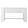 This coffee table serves as a chic centerpiece, blending functionality and style effortlessly. With its modern design, it fits into any living room or bedroom setting, providing a versatile solution for both dining and working needs that enriches the home atmosphere. Lift-Top Functionality: Experience the convenience of transforming this coffee table into a dining table with just a simple lift, allowing you to enjoy meals comfortably in your living space. Hidden Storage Compartment: The ingenious design includes a concealed compartment that maximizes space, perfect for storing magazines, remotes, or other essentials out of sight, yet easily accessible when needed. Trendy Glossy Finish: The high gloss white finish adds a sophisticated touch to your decor, making this table a statement piece that draws attention while blending seamlessly with various interior styles. Ample Surface Area: With dimensions of 39.8 x 19.3 in, this table provides sufficient space for beverages, snacks, and decorative items, making it ideal for entertaining guests or relaxing at home. Durable Construction: Crafted from engineered wood, this coffee table is designed to last, offering stability and durability for everyday use whether it's serving coffee or hosting family dinners.