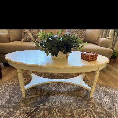 Coffee Table Off White - Acme Furniture: Carved Wood Legs, Antique Finish, Living Room Furniture