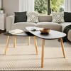 - This coffee table set has a unique Scandinavian style, making it a great fit for any living room or lounge area. The sleek black MDF tabletop paired with solid pine wood legs gives it a modern and minimalistic look while making it practical and functional for daily use. Minimalistic Design: This coffee table set has a Scandinavian look, with clean lines and simple shapes - just right for modern interiors.Durable Construction: With solid pine wood legs, this furniture is built to last and can handle regular use without losing quality.Versatile Use: These tables are perfect for coffee, end tables, or even as plant stands, covering lots of uses around your home.Easy Maintenance: The matte finish makes keeping them clean a breeze - just a quick wipe with a dry cloth is all you need.Complete Set: The product includes two coffee tables that go well together, giving you plenty of space for drinks, snacks, or decorations. Number Of Items: 2Color: BlackShape: TriangularMaterial: Solid pine woodFinish: MatteIndoor/Outdoor: Indoor OnlyCover Included: NoRoom: Living RoomDimensions: 19.7 x 39.4 x 15.7 in (W x L x H)Leg Height: 13.8 inWeight: 17.75 lbsDelivery Contains: 2 coffee tablesAssembly Required: YesRecommended Number of People for Assembly: 1