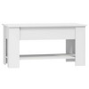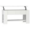 - This modern coffee table is a perfect mix of function and style, making it a great choice for your living room or bedroom. Its smart rectangular shape, all in a smooth white matte finish, brings sophistication while giving you loads of space for coffee cups, books, or decorative bits. Elegant White Finish: The clean, matte white finish of this coffee table brightens up any contemporary decor and gives a nice airy vibe to your space. It pairs beautifully with your existing furniture while providing a smooth surface for tons of activities.Lift Top Design: Enjoy the perks of a lift top that reveals hidden storage, perfect for keeping remote controls, magazines, or any bits you¡¯d rather hide. This clever design lets you switch between a coffee table and a storage solution in a flash.Versatile Usage: This coffee table isn¡¯t just for drinks; use it as a dining spot, a place to sort your laptop, or a surface for games. Its versatility means it¡¯s handy for every occasion, making it great for gatherings with family and friends.Sturdy Construction: Made from high-quality engineered wood, this table's built to last and holds up well against heat. Elegantly designed to handle daily use, this piece will stick around for years if you take care of it.Ample Dimensions: Measuring 39.8 in long, 19.3 in wide, and 20.5 in tall, it fits nicely into different living spaces, from tiny studios to spacious homes. Whatever your room size, this coffee table seamlessly blends in. Color: White Shape: RectangularMaterial: Engineered woodIndoor/Outdoor: Indoor OnlyCover Included: NoRoom: Living RoomMaximum Number of People: 4Dimensions: 19.3 x 39.8 x 20.5 in (W x L x H)Min-Max Dimensions: 20.5, 25.8Weight: 65.74 lbsDelivery Contains: 1 Coffee TableAssembly Required: YesRecommended Number of People for Assembly: 2
