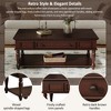 Wood Coffee Table Retro Rectangular Cocktail Table 2-Tier Center Table with Drawer & Lockable Wheels - ModernLuxe