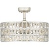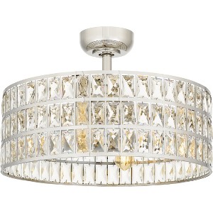 - Crystal Fandelier: The Coffman Fandelier is a combination of semi-mount 3 blade ceiling fan & a drum-shaped ceiling light that features clear glass crystal accents that catch the light & flutter with movement, adding a touch of luxury to any space