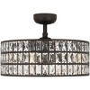 - Crystal Fandelier: The Coffman Fandelier is a combination of semi-mount 3 blade ceiling fan & a drum-shaped ceiling light that features clear glass crystal accents that catch the light & flutter with movement, adding a touch of luxury to any space