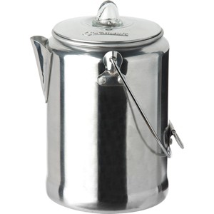 Great for camping, the lightweight Coghlan's 9-Cup Aluminum Coffee Pot is made of durable, rust-proof, and polished aluminum. It features a percolator stem with basket and dual, quick-cool bail handles on the top and side making for a safe, steady pour. This coffee pot heats quickly and is easy to clean.