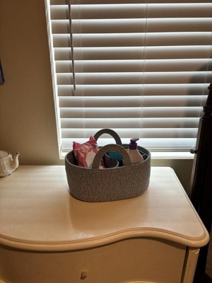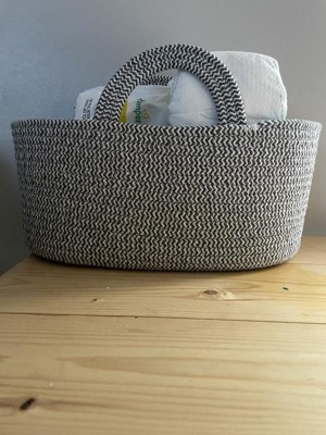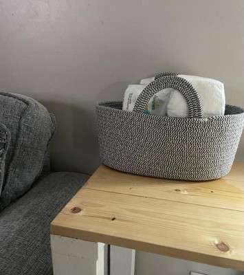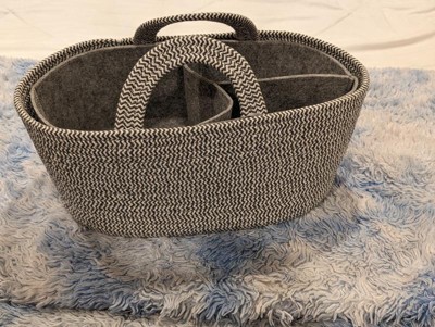 Store and carry baby items and essentials on the go with this Coiled Rope Diaper Caddy with Dividers from cloud island™. This decorative diaper caddy features a gray and cream coiled rope construction for a fun pop of texture. The three divided compartments come in handy for stashing their diapers, wipes, rash creams or other necessities, while the top handles allow for easy portability.