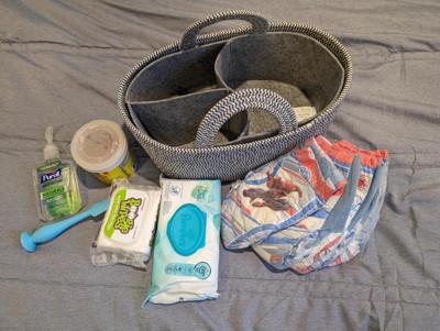 This matches my living room perfectly! I love having all of my baby needs organized & ready for me to use. I have 3 diaper caddy’s throughout my house so I don’t have to move them but these are easy to move around with the handles on them.