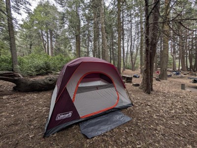 With a quick setup under 5 minutes, the Skydome Camping Tent lets you enjoy more time with friends and family on the next camping trip. There is plenty of room to stretch inside the spacious interior thanks to the nearly vertical walls that offer 20% more headroom than a traditional Coleman dome tent. Plus, a wide door design means you can move air beds, sleeping bags, and other gear in and out with ease. Downpour in the forecast? Not to worry, the WeatherTec system's tub-like floor, patented welded corners, and inverted seams help keep you and your gear dry. Skydome tents are available in a range of sizes (2-person, 4-person, 6-person, or 8-person), with or without Dark Room technology.