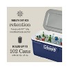 Icy beverages and shared meals fuel the best times outdoors, and the 316 Series™ Cooler is the right choice for the job. This large 120-quart chest holds up to 102 cans and 60 lbs. of ice, enough to refresh the entire gang. Looking for multiday ice retention? TempLock FX™ insulation in the lid and body has you covered. And, the 316 Series is made with 15% less plastic than comparable Coleman coolers. Built to last, the Have-A-Seat Lid™ supports up to 250 lbs., has four cup holders, and is recessed for easy access. Want more? The tethered drainplug resists leaks, the liner resists stains, and our EZ-Clean top makes cleanup simple. Sporty tri-color combo has classic appeal, and there's even a built-in ruler for measuring the catch of the day. From campsite to worksite, beach to bonfire, soccer field to stadium–Coleman helps you keep your cool.