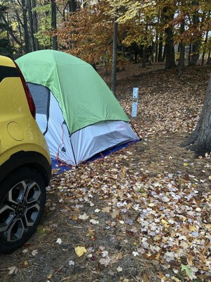 This tent has received high praise for its ease of setup, spacious interior, and durability in various weather conditions. Guests appreciate the quick assembly time, often under ten minutes, making it ideal for family camping trips or backyard adventures. The tent's design allows for ample headroom and storage, accommodating air mattresses and gear comfortably. While some guests noted minor issues with zippers and pole durability, the overall experience has been positive, making it a great choice for outdoor enthusiasts.