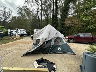 I'm currently camping in this 8-person Coleman tent and unfortunately it's not holding up. It's been raining moderately — not heavy storms — and the tent is already leaking through the fabric itself, not just the seams. We're worried that if the rain picks up, the inside will be completely soaked. The product description made it seem like no additional rain fly was necessary, but that’s clearly not true. Meanwhile, the smaller 4-person Coleman tent we also brought is handling the rain just fine. It's frustrating that the larger, more expensive model actually performs worse in the same conditions. I’ll most likely be returning it after this trip. If you’re considering this tent, know that it absolutely needs additional waterproofing, and even then it may not hold up. I’d recommend looking at other options if you want something reliable for real-world camping.