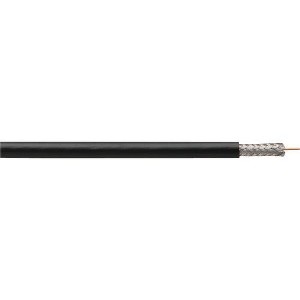 Dual shielded RG6 with 18-gauge copper clad steel center conductor, a bonded APA foil shield, and 40% aluminum braid shield. For use in CCTV (closed-circuit television) or CATV (community antenna television) applications. Not for use in riser or plenum applications. 1000-feet. Black.