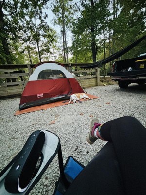 My experience with Coleman tents has always been excellent, and this one is no exception. This is a solid, no-frills tent, great for car camping. I've only used it once so far, for a 3-night camping trip in which there was no rain but a little bit of wind, and it held up no problem. It's also very easy for one person to set up - it took maybe 10-15 minutes using the directions and taking my time.