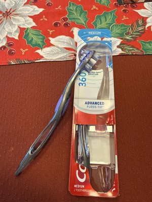 - Includes two (2) Colgate 360 Total Advanced Floss Tip* Medium Bristles Toothbrushes, Medium Toothbrush Pack