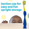 - Features a thumb rest for great control when brushing and comes with a built-in suction cup holder for easy and fun upright storage