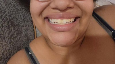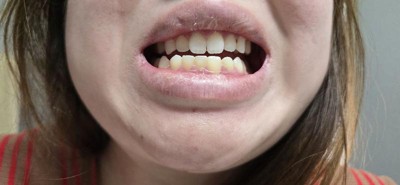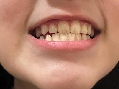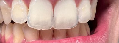 White teeth, purple toothpaste!