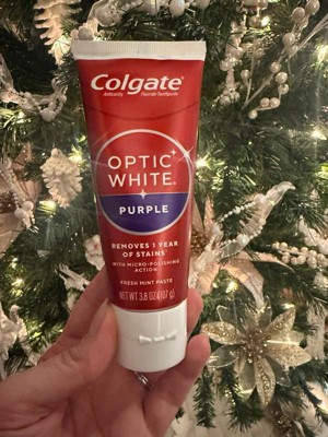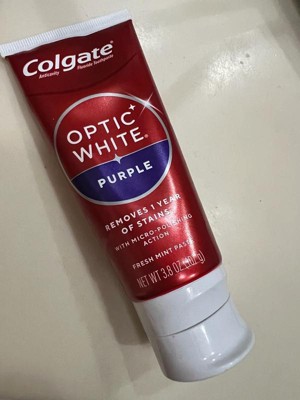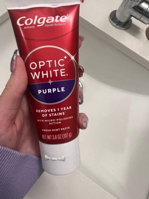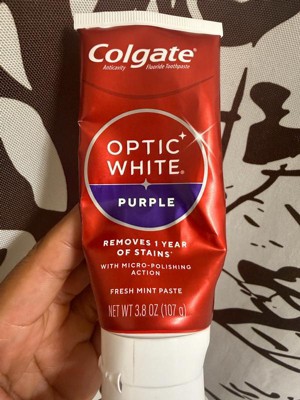 Colgate Optic White Purple Teeth Whitening Toothpaste - Anticavity Toothpaste with Fluoride - Fresh Mint Flavor - 3.8oz