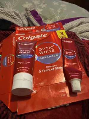 - Remove 5 years of stains* with the Colgate Optic White Advanced Teeth Whitening Toothpaste (*when brushing twice daily for 2 weeks)