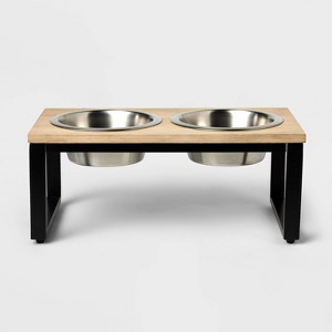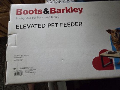 Bring ease to your pet's day with the Elevated Feeder Double Cat and Dog Bowl from Boots & Barkley™. This pet feeder is designed in a rectangle shape and fits two bowls to help keep food and water separate. It's designed with a metal frame with a nonslip base and a wooden tabletop. This pet bowl boasts an elevated design for comfy eating and collapses for convenient storage when not in use.