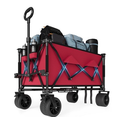 Collapsible Foldable Wagon for Beach, Heavy Duty All Terrain Wagons Extended with Cup Holders, Extra Long Wagon with Wheels for Sand