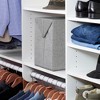 This tall collapsible storage bin is a smart way to accomplish easy storage, without the worry of miss-matched lids. Minimal but with a unique design, this collapsible storage bin would be great for anyone looking for a chic storage storage option. This fabric storage bin is made of textured PET and cotton fabric with a foldable frame. The simple style of this bin makes it perfect for storing anything including office supplies, keepsakes, scarves, ties, sewing supplies and much more. The soft fabric is gentle but offers protection during storage as well. With its taller profile, this bin utilizes vertical space to store slim or more oddly shaped items. The bin can be left open for quick access or closed for containment. To close this bin, simply fold down the top sides in an origami-like fashion for a clean and composed look. This neat feature removes the need for separate snap-on lids, hook and loop closures or latches. The folding lid makes retrieving items super easy. It also gives the bin a sleek look and feel. The squared shape of this bin would fit well in most closet shelving, on top of the bedroom dresser or inside a bookshelf cubby. The minimalist design allows this tall collapsible storage bin to fit-in wonderfully anywhere in the home.