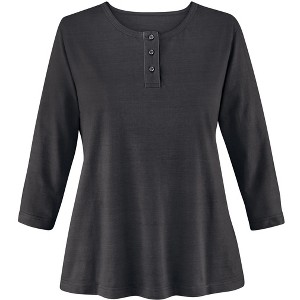 Collections Etc 3/4 Sleeve Scoop Neckline Knit Henley Top - 1 of 4