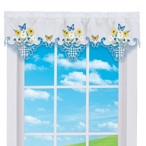 Collections Etc Butterfly Daisies Embroidered Cut-Out Window Valance