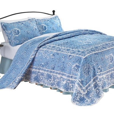 Collections Etc Camille Reversible Diamond Textured Quilted Bedspread King Gender Neutral Blue/Light Blue