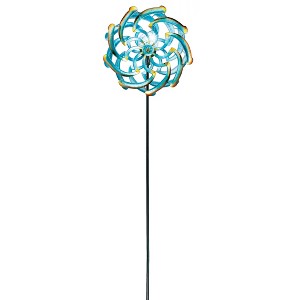 Instantly Add Beautiful Color, Light And Motion To Your Yard With This Impressive Wind Spinner Stake. The Double Spinner Features A Brilliant Blue And Gold Design. At Night, The Glass Ball In The Center Automatically Shines With Solar-Powered Light. Stakes Easily Into The Ground. Includes 1 "Aaa" Rechargeable Battery. Iron And Glass. 13 1/2"L X 55 1/2"H.