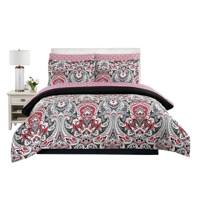 Dress Up Your Bedroom With This 7-Piece Comforter Set That Includes A Cozy Comforter, A Fitted Sheet, A Flat Sheet, Two Pillow Shams And Two Pillowcases. The Comforter Features A Beautiful Paisley Design In Rich Shades Of Grey, Black, White And Red, And The Sheets Are A Coordinating Smaller Red Paisley Print. Machine Wash. Polyester; Imported. 7-Piece Set. Choose: Queen (Comforter: 86" X 86", Shams: 20" X 26") Or King (Comforter: 102" X 86", Shams: 20" X 36").