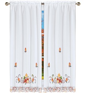 Collections Etc Embroidered Autumn Maple Leaf Drapes with Tiebacks Included