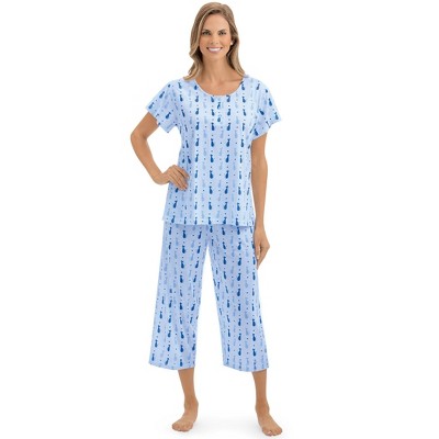 This Lovely Pajama Set Features An All-Over Dobby Pattern On A Lilac Or Mint Background, With A Beautifully Embroidered Border Design. Top Features A Scooped Neckline, Pintuck Bodice And 3/4-Button Placket. Matching Capris Feature An Elasticized Waist For Comfort. Top Is 26"L; Inseam Is 22"L. Machine Wash. Polyester And Cotton; Imported. Color Available In Mint Or Lilac. Size Available In M(10-12), L(14-16), Xl(18-20) Or Xxl(22-24).